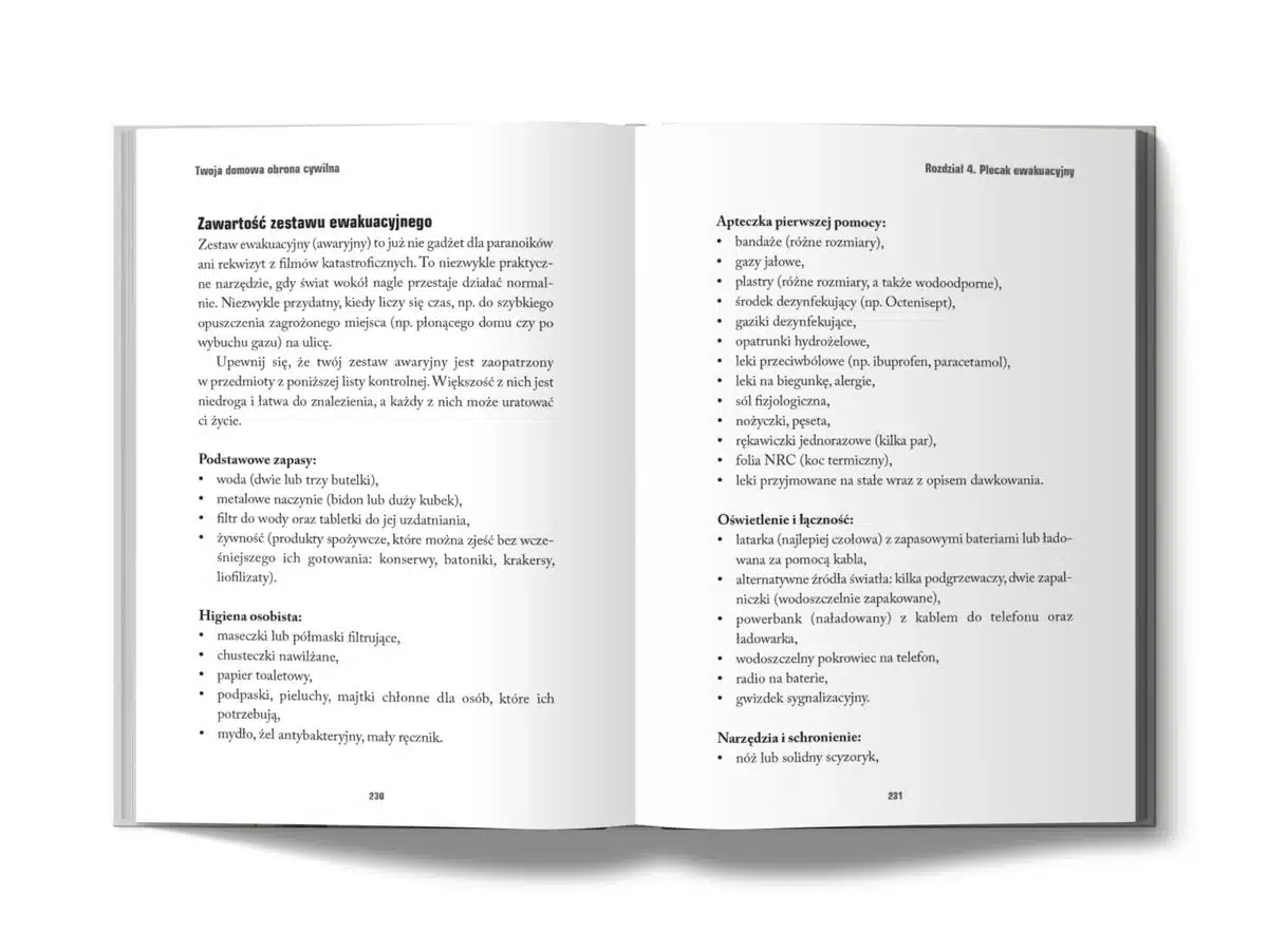 Ta książka to praktyczny poradnik dla każdego, kto chce poczuć się pewniej w obliczu nieprzewidywalnych zdarzeń, takich jak wybuch wojny, powódź, pożar czy blackout. Znajdziesz tu informacje na temat tego, czego dokładnie potrzebujesz oraz jak postąpić przed, podczas i po wystąpieniu zagrożenia.